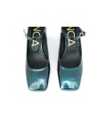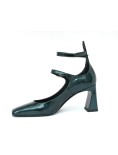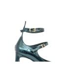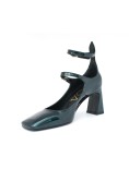 Forma e tacco quadra con Duplice braccialetto collo e caviglia in Vernice Lux e fodera in pelle Nero.