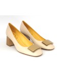 Noa Decollette Tacco Largo Nappa Cappuccino Beige