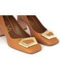 Tacco a piramide foderato in pelle .