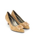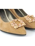 Tomaia in Morbido Camoscio con Accessorio a forma di Cornice ricoperto di Strass Crystal