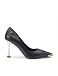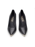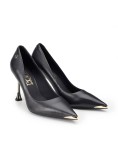 Un classico intramontabile per elevare ogni look sono senza dubbio le pumps nere e Cult le propone in questa versione ultra glamour. Il modello è realizzato in pelle nera e presenta punta affusolata con un dettaglio metallico e tacco sottile geometrico.