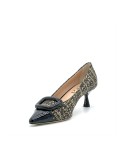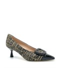 Elata Decollette Punta Tessuto Tweed Beige Foresta Naplak Nero