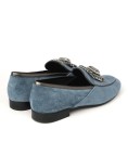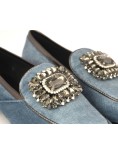 Mocassino Hego’s , materiale velluto , colore porpora, accessorio centrale gioiello. Dettaglio in pelle . Fondo gomma con antiscivolo