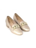 Confort Mocassino Tacco Medio con Accessorio Laminato Champagne