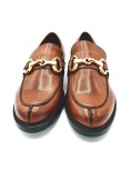 Mocassino in pelle Vueva WS-177R23 cuoio, dotato di un elegante accessorio color oro.