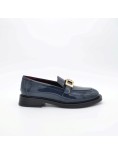 Lorenzo Mari Mocassino Punta Squadrata Fibbia Vernice Blu
