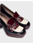 Mocassini con plateau GUETTA in vernice nera stropicciata. I mocassini GUETTA si distinguono per il loro design classico ed elegante, con dettagli di frange sul collo del piede, un ornamento metallico e una punta quadrata. La suola con plateau in gomma flessibile offre un comfort extra al modello. La soletta MemoryGel ammortizza ogni tuo passo. #madewithloveinSpain Wonders supporta la produzione responsabile tramite LEATHERWORKINGGROUP