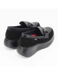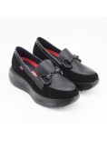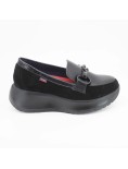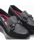 Mocassino da donna con tomaia in morbido materiale effetto scamosciato e pelle.