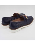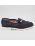 Daniela Rossi Mocassino Traforato Fondo Bianco Pelle Blu
