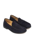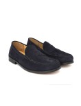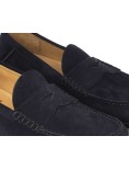 Mocassino Artigianale Uomo Modello College realizzato in camoscio Blu.