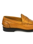 Mocassino Artigianale Uomo Modello College realizzato in Vitello pieno Fiore Cuoio Sfumato .