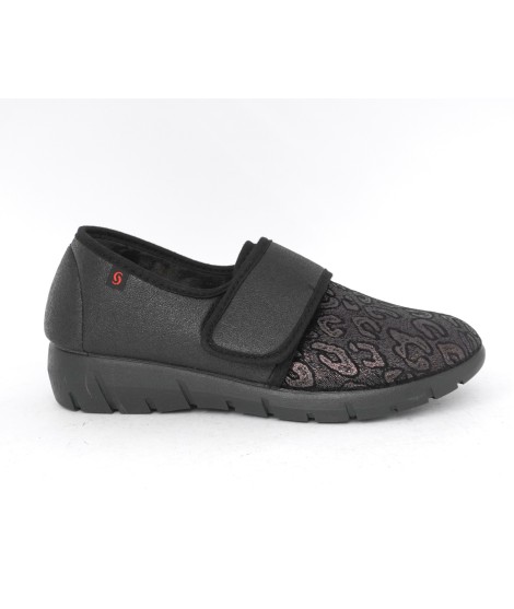 Pantofolina ultra comfort, tomaia modellabile elasticizzata con ampio Velcro di regolazione,
