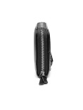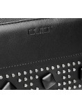 Portafoglio firmato Cult declinato in una versatile tinta nera e impreziosito da borchie metalliche e elementi piramidali nella parte frontale. Al suo interno sono presente due scomparti per organizzare banconote, tessere e monete. La chiusura è tramite zip metallica. Dimensioni 10x20x3
