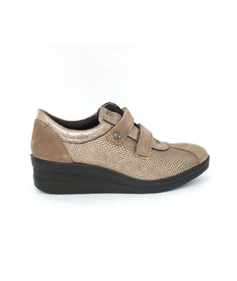 Scarpa con chiusura doppio velcro da donna in pelle. La camminata ha tutto un altro stile con questo modello, comodo e pratico da indossare grazie alla chiusura con velcri. Suola leggermente rialzata e gonfietto di protezione alla caviglia assicurano massimo comfort e ammortizzazione per la camminata. Il sottopiede anatomico memory foam è estraibile e rivestito in pelle per assicurare traspirabilità e igiene.