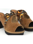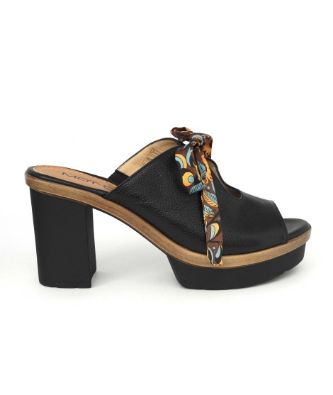 Modello sabot monofascia con particolare fiocco in raso regolabile per agevolare la calzata.