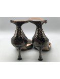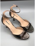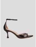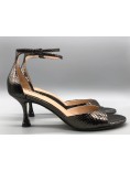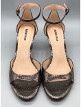 Sandali con tacco Lola Cruz in pelle metallizzata effetto serpente, modello Kumala Sandal 65. Bracciale regolabile con chiusura a fibbia.