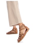 Carmela Sandalo Etrusca 3 Fibbie Zip Dietro Nappa Cammello
