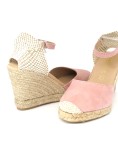 Sandalo Espadrillas con zeppa alta in juta e tomaia chiusa in Camoscio