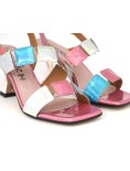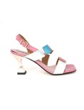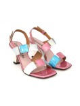 Le Gazzelle Sandalo Tacco Trasversale Scacchi Rosa Cielo