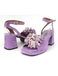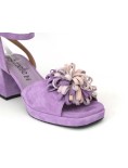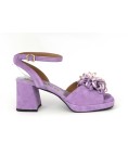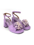 Tomaia in Morbido camoscio con cinturino regolabile arricchita da un fiore