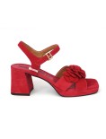 Tomaia in Morbido camoscio con cinturino regolabile arricchita da un fiore