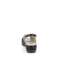 Realizzato in vera pelle (anche la fodera) con cuciture a contrasto e punti luce applicati. Il cinturino regolabile nasconde un inserto elasticizzato che consente una calzata salda senza stressare il piede.