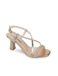 Valleverde Sandalo Elegante Tacco Medio Incrocio Strass Laminato Rosa