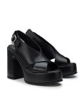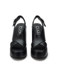 Osate catturare gli sguardi con i sandali in pelle nera realizzati da Cult per questa stagione. Si ergono su un imponente tacco a blocco personalizzato con il logo lettering laterale, presentano un generoso plateau e chisura con fibbia metallica.