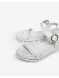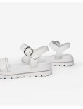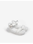 Sandali in pelle con doppia fascia e strass sul profilo .