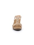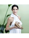 Tutta la leggerezza del sughero racchiusa in una zeppa pensata per slanciare. Il sottopiede Re-Soft ammortizza l’impatto al suolo e risulta morbidissimo anche dopo molte ore di calzata. Il dettaglio che fa la differenza? La tomaia t-bar incrociata. Chiccosissima!