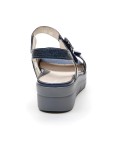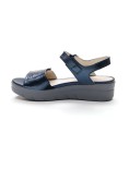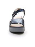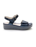 Sandalo con zeppa da donna in pelle laminata blu con vestibilità regular. Modello storico e senza tempo con velcro regolabile, comodo e leggero, è perfetto per completare i tuoi outfit casual. La tecnologia Blusoft® supporta la tua camminata garantendo massimo comfort e ammortizzazione. Suola in PU, altezza tacco (cm): 4.5.