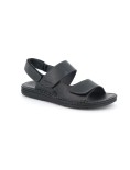Grunland Sandalo Uomo Cucito Tutto Pelle 3 Velcro Nero