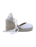 Raquel Perez Sandalo Espadrillas Corda Tallone Semichiuso Nastri Bianco