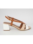 Donna Serena Sandalo Tacco Medio Incrocio Multicolor Bianco Cognac