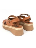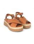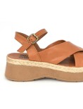 Bueno Sandalo Zeppa Media Corda Incrocio Nappa Cuoio
