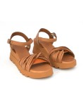 Bueno Sandalo Zeppa Media Fascette Incrocio Nappa Cuoio