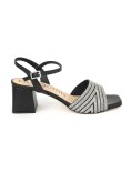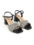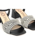 Pasquini Sandalo Tacco Medio Gioiello Strass Pelle Nero