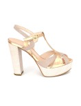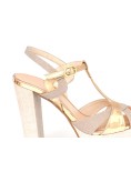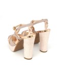Tomaia in Pelle Laminata con inserti in Glitter Cipria , braccialetto T Bar regolabile
