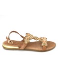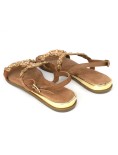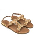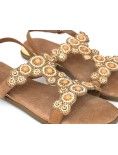 Particolare tomaia doppia T che abbina strass e pietre colorate