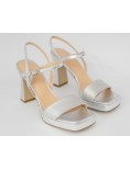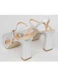 Sandalo in pelle color Argento Nero con Particolari laminature