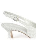 Sandalo in tessuto glitterato e fodera in pelle silver