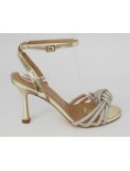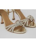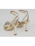 Tomaia in nappa laminata e fascia anteriore a nodo ricoperta di micro strass