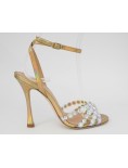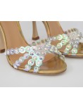 Tomaia in nappa laminata e fascia anteriore a farfalla in laminasto specchio ricoperta di strass