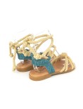 Sandalo basso con incrocio anteriore in corda e da un cordoncino da allacciare alla caviglia effetto Romana