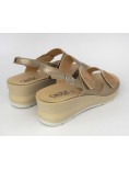 Cinzia Soft Sandalo Zeppa Classic Plantare 2 Velcro Beige Platino