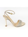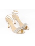 Sandalo alto in morbida nappa e specchio con cinturino alla caviglia, ricamato con strass.