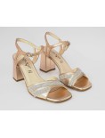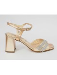 Sandalo Elegante realizzato in pelle laminata argento e strass a colore.