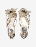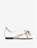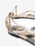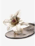 I sandali HEGO'S Milano sono un elemento elegante del tuo guardaroba estivo. La tomaia dorata è decorata con un grande fiore in tinta. I sandali si allacciano intorno alla caviglia con un cinturino fatto di perle e catena.