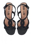 Sandali Ayla firmati Bibi Lou realizzati in rafia con strass e punta quadra.