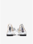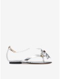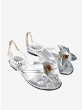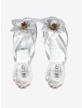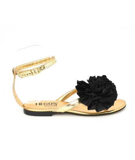 I sandali HEGO'S Milano sono un elemento elegante del tuo guardaroba estivo. La tomaia argentata è decorata con un grande fiore in tinta. I sandali si allacciano intorno alla caviglia con un cinturino fatto di perle e catena.